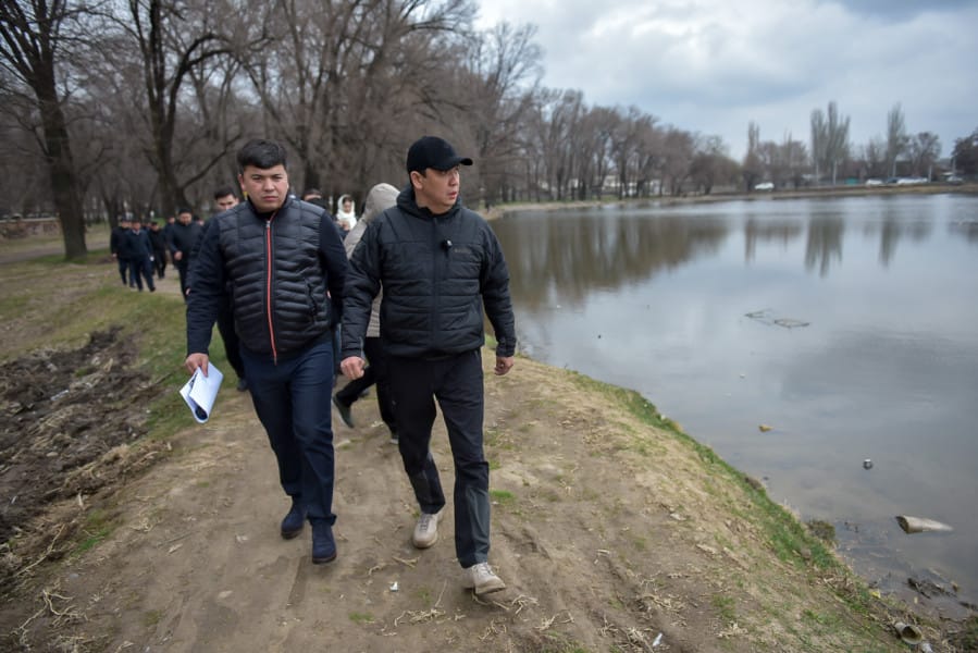 На рынке «Дордой» градоначальник осмотрел участок возле озера, где планируют построить новую дорогу. Городские службы уже вывезли из водоема более 20 тонн отходов, теперь им предстоит очистить берега от камыша. Мэр приказал усилить работу по устранению незаконных объектов, которые мешают расширению трасс. Для решения транспортных проблем профильные ведомства рассмотрят участки под строительство многоуровневых парковок и усилят контроль за автомобилями, которые водители оставляют на газонах.