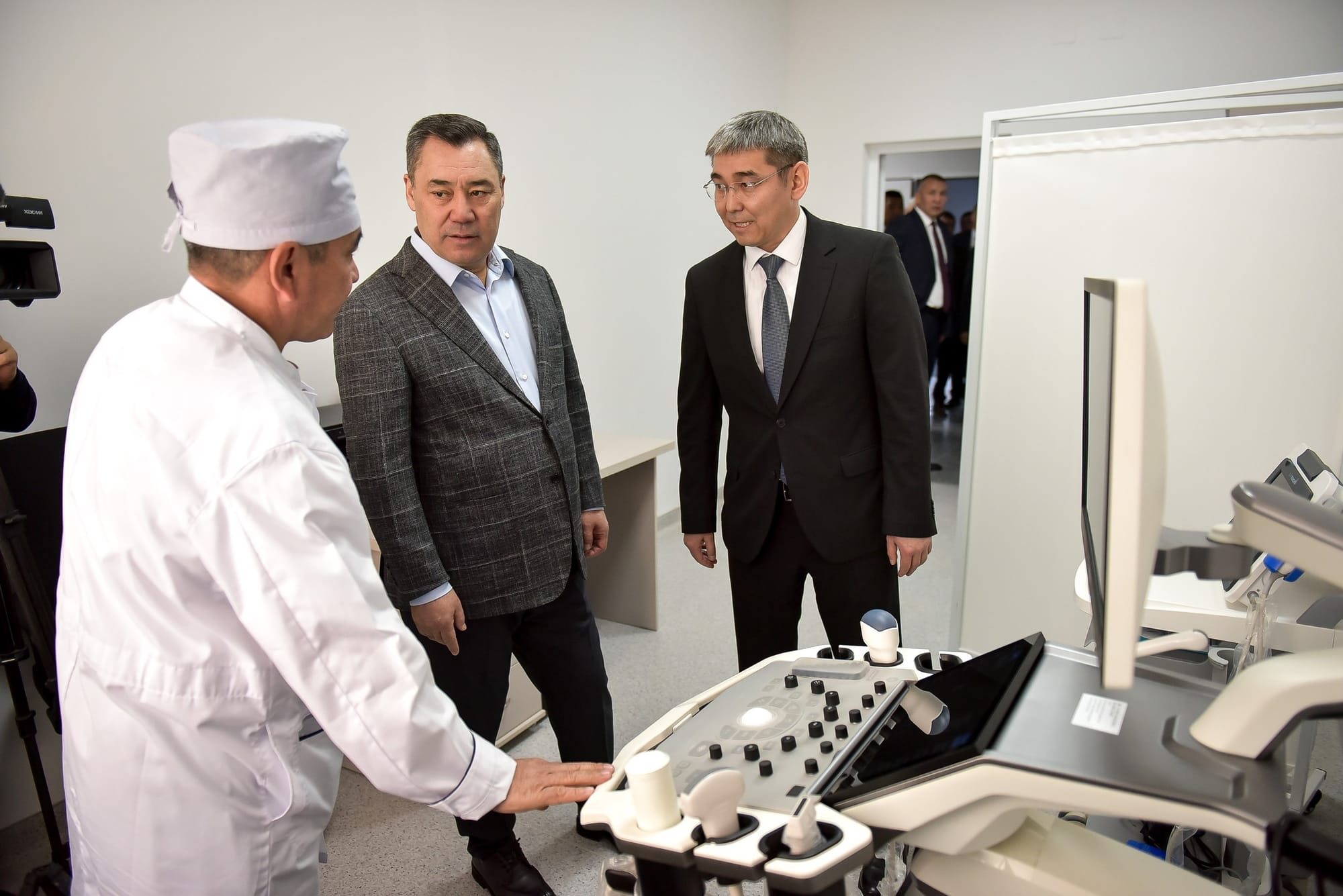 Садыр Жапаров открыл в Кара-Суу современную поликлинику с компьютерным томографом, УЗИ и рентген-аппаратурой.