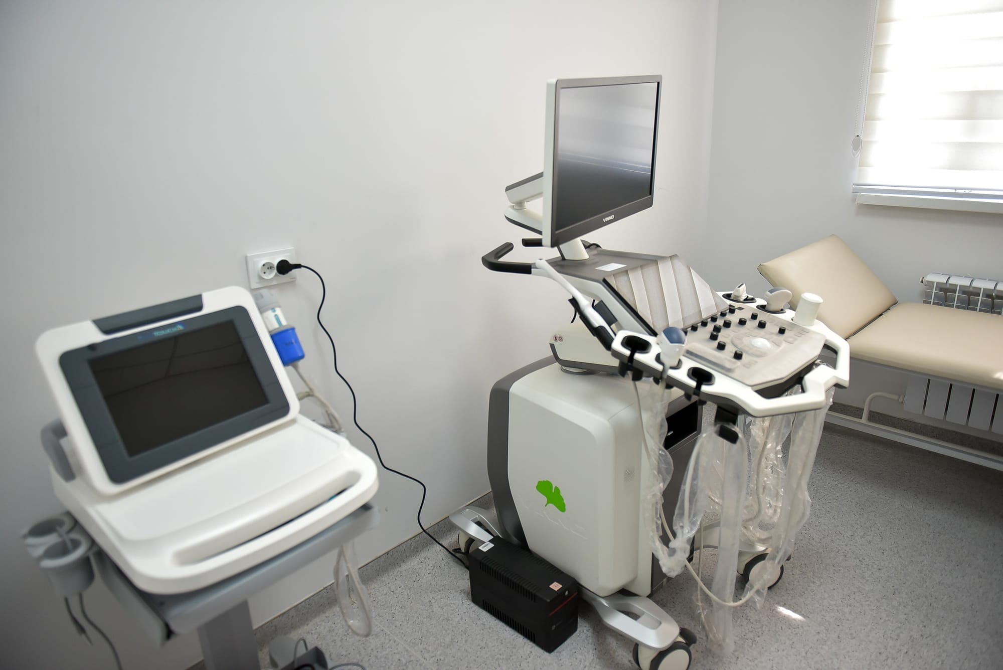 Учреждение полностью укомплектовано мебелью и современным оборудованием, включая компьютерный томограф, УЗИ-сканеры, рентген-аппаратуру и системы для фибросканирования.