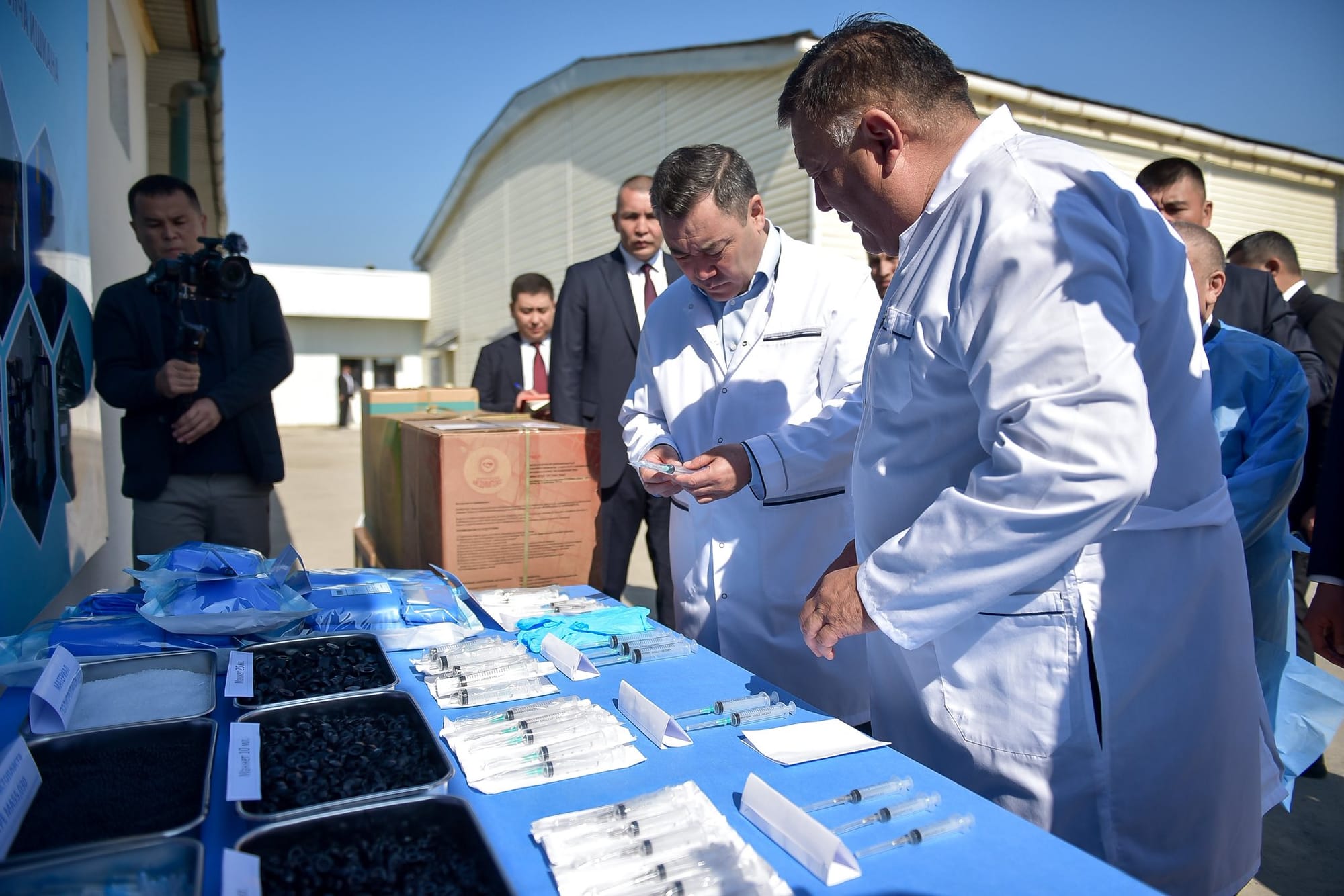 Президент КР Садыр Жапаров посетил компанию «Медимпекс», выпускающую медицинские изделия в Ошской области. Об этом сообщили в пресс-службе главы государства.